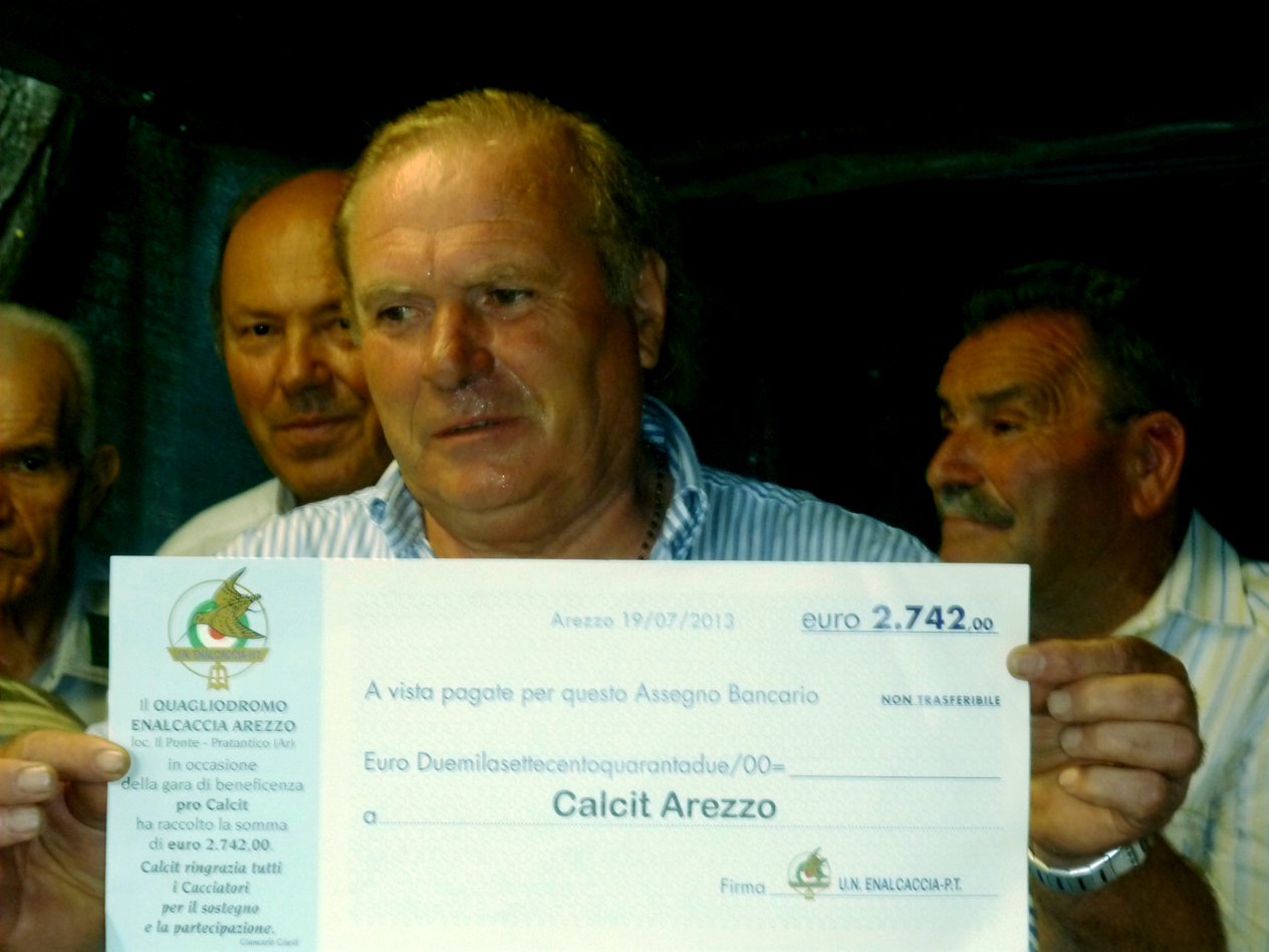 importante somma raccolta dall’Enalcaccia aretina grazie all’organizzazione diretta di una prova cinofila su quaglie svolta nel luglio scorso; un nobile gesto che i cacciatori dimostrano di saper fare, senza se e senza ma!!