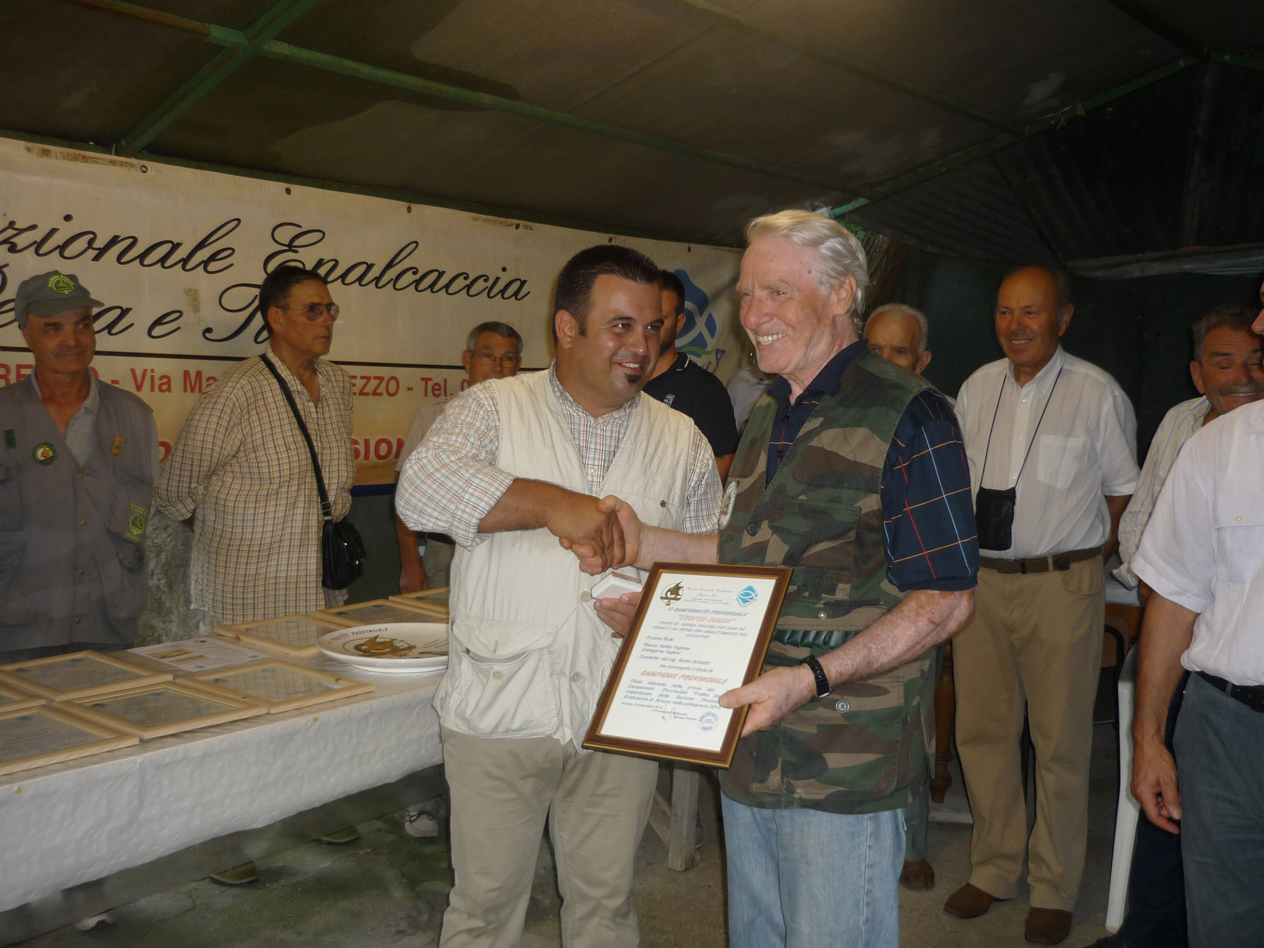 Come consuetudine, la consegna delle ambite medaglie d’oro ai primi tre classificati di ogni categoria dei due campionati provinciali ed al primo assoluto di ogni categoria nel trofeo “Valli Aretine”, nonchè la proclamazione dei campioni provinciali 2013 con l’ assegnazione degli attestati di merito. Quindi, la consegna al vincitore, Giancarlo Petrucci con Tobia B.F., dell’ambitissimo trofeo provinciale “Valli Aretine”, piatto in ceramica lavorato a mano raffigurante il logo dell’Enalcaccia, i gonfaloni dei comuni capoluogo delle 4 vallate aretine e del capoluogo di provincia ed una starna stilizzata.