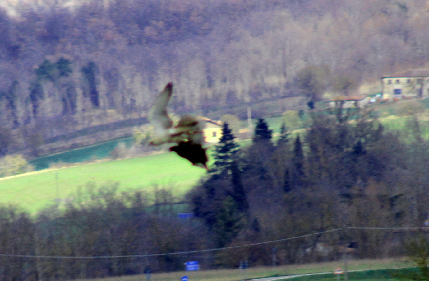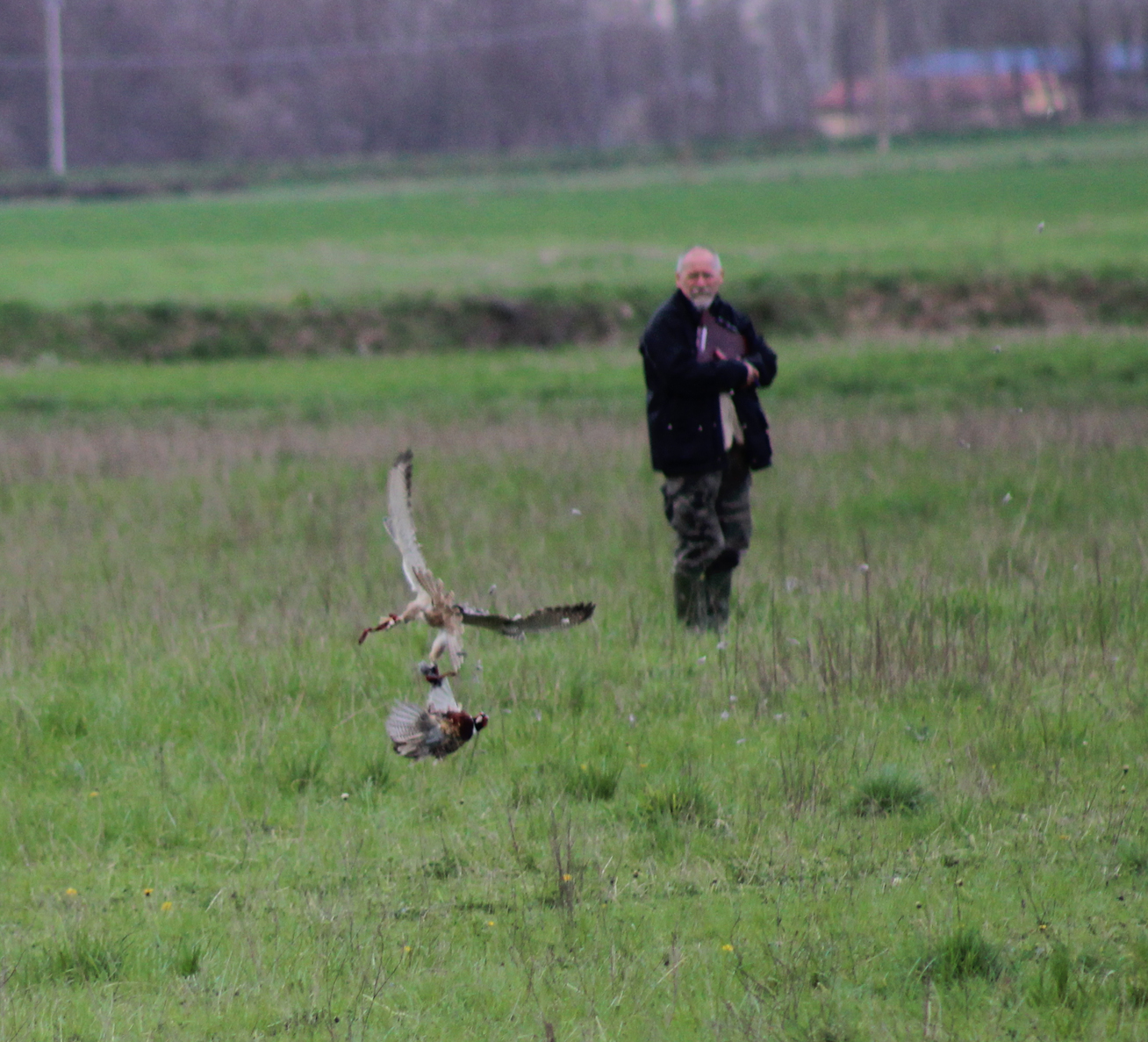 Pochi secondi e il dramma si compie. Una fagiana frulla esplodendo dall’erba come un piccolo bolide tentando la mossa della disperazione, ovvero riuscire ad arrivare al boschetto dove una volta a terra sarà, forse, al sicuro dagli artigli del falcone.
