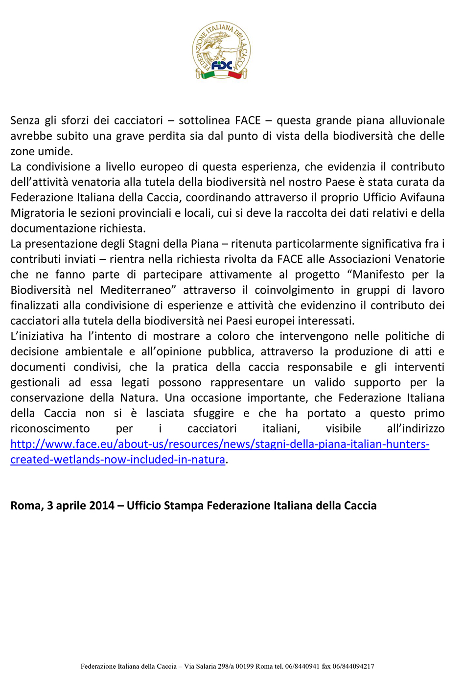 Dall’ufficio Stampa Federcaccia riceviamo un importante comunicato, e lo pubblichiamo nella sua interezza: