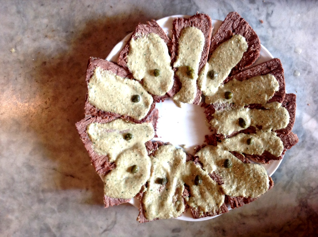 Quando il pezzo di carne si sarà freddato, incominciate a tagliarlo a fette sottili spalmando su ognuna la salsa che precedentemente avete preparato. A questo punto guarnirete con i capperi. Il vitel tonnè è un piatto tipico del piemonte, ottimo per le nostre cene estive… Buona estate!
