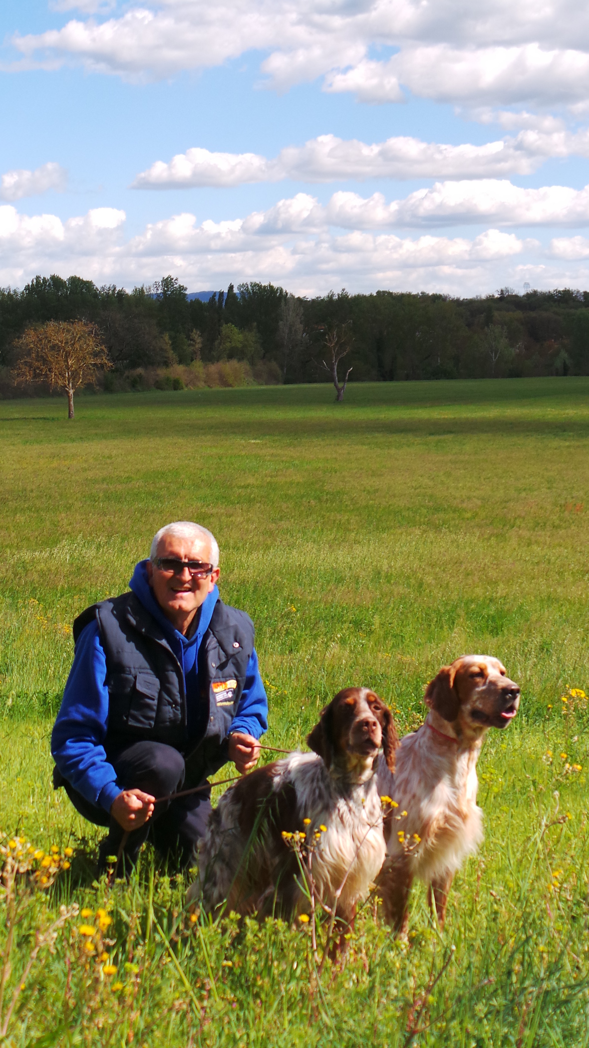 “malattie” che ci si nasce, però l’episodio che ha rotto gli argini è stato quando la mia fidanzata, dopo divenuta mia moglie, mi regalò un cucciolo di setter inglese, anzi, una cucciola per la precisione. Erano gli anni settanta, ed entrambi eravamo poco più che adolescenti. Lei, sapendo di farmi piacere, comprò la cagnina, per una cifra all’epoca non indifferente, da un noto allevatore della provincia d’Arezzo, Vivaldo Peruzzi, titolare dell’affisso della Gigliola. Fu quel regalo, quella piccola cucciola biancopezzata, che cambiò la mia vita e modificò il mio destino. Pur tra tante difficoltà, mi dedicai con tutta l’anima a crescerla, ad addestrarla e ad educarla, ma presto mi resi conto che da solo non ce l’avrei mai fatta. Allora tornai dal Peruzzi, per chiedergli consiglio e illuminazione e lui fu per me il primo, indimenticabile mentore. Passavo pomeriggi interi con lui, aiutandolo a rigovernare i cani, osservandolo quando addestrava, chiedendo con educazione e ascoltando con umiltà, senza mai parlare troppo ma stando sempre attento a carpire ogni suo