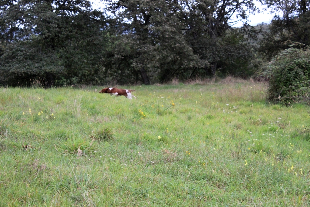 “Questo va come un treno! Forse converrebbe mettergli il campano..”, suggerisce Salvatore, ammirato dalla cerca efficace ed elegante del giovane bracco.