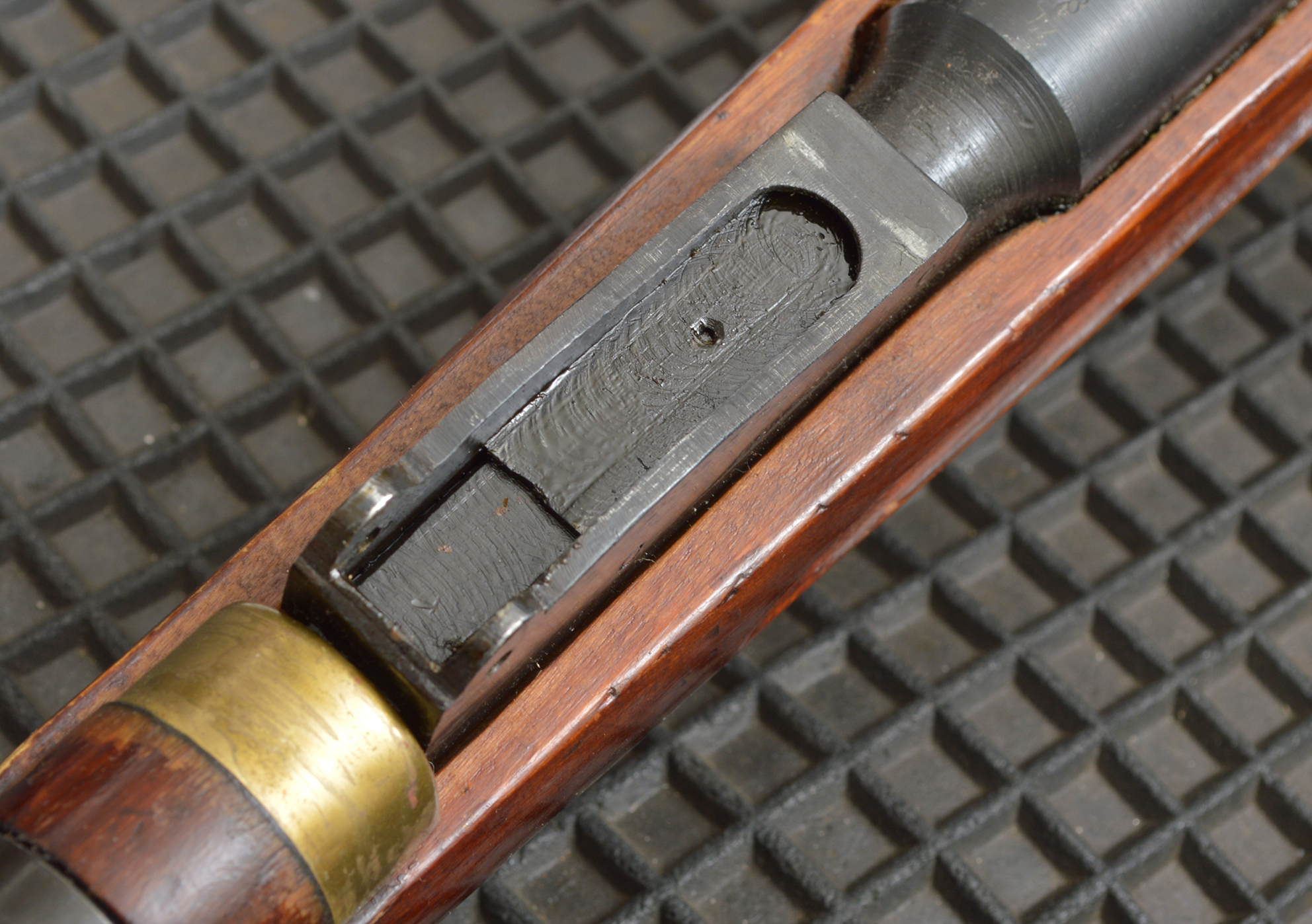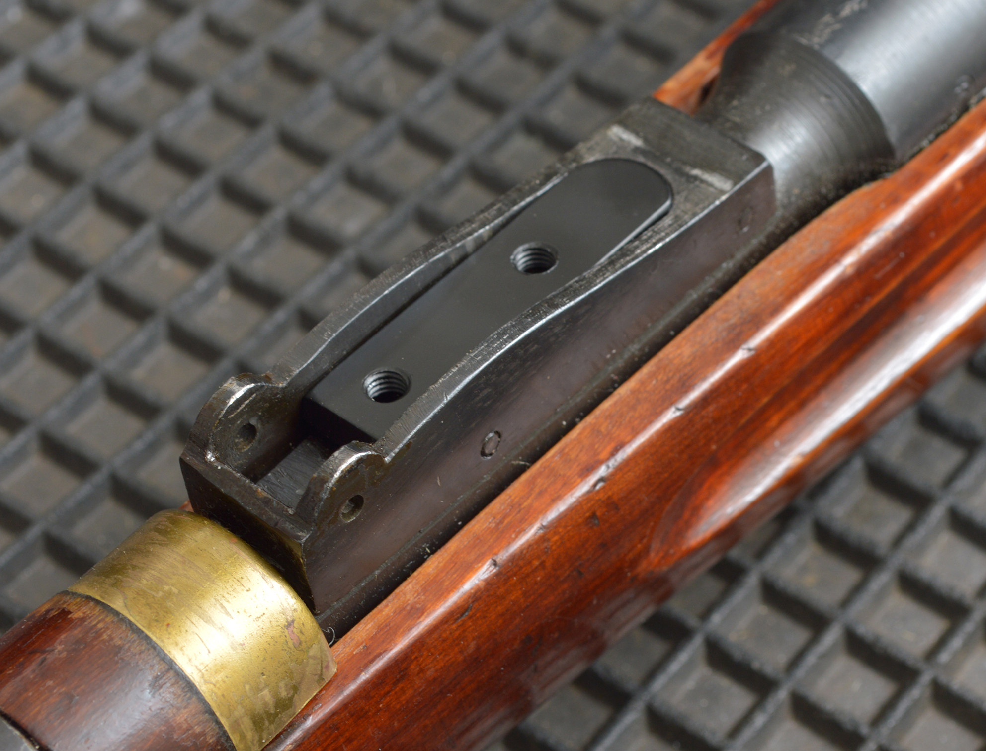 necessarie. Il primo passo consiste nella rimozione della tacca di mira, operazione semplice perché basta sfilare una spina; il resto invece richiede una certa manualità. Infatti, poiché il rispetto delle quote su armi costruite in fretta in tempo di guerra non è mai garantito, sia la basetta sia l’elemento sostitutivo della molla sono sovradimensionati. La scelta è corretta e con una lima e la minima manualità necessaria il problema si risolve, ma chi non ce l’ha deve rivolgersi a un armaiolo; io mi sono rivolto a Roberto Palamà, apprezzato preparatore di armi.