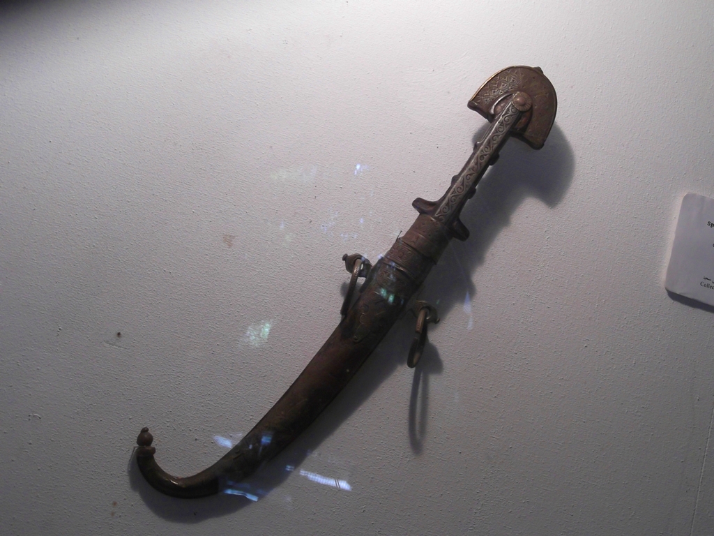 Le armi bianche sono anch’esse parte della grande tradizione araba, avendo, il medesimo oggetto, la duplice funzione di utensile da caccia e da battaglia, nonché da difesa personale. Quelli che ho visto sono del tipo “Khajar”, con foderi più semplici, e del tipo “Koumia”, un po’ più elaborati nelle decorazioni che venivano apposte su uno strato di rame steso sopra il ferro. Anche qui, i motivi dei decori dipendevano dal gusto personale e dal genere di attività che presumibilmente si sarebbe andata a svolgere. Sono in genere a lama curva, quasi sempre almeno di buone dimensioni e molto flessibile, quindi