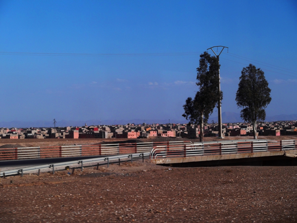 Ci avviciniamo alla nostra meta. Ben Guerir, la grande città che la precede sulla linea ferrata, è tappa obbligatoria del pur velocissimo espresso. Ci fermiamo, qualcuno scende. Nell’orizzonte ormai diventato perlaceo, l’abitato si estende con le sue case e i suoi minareti. Ripartiamo quasi subito. Dopo un’ora, eccola davanti a noi : Marrakech…