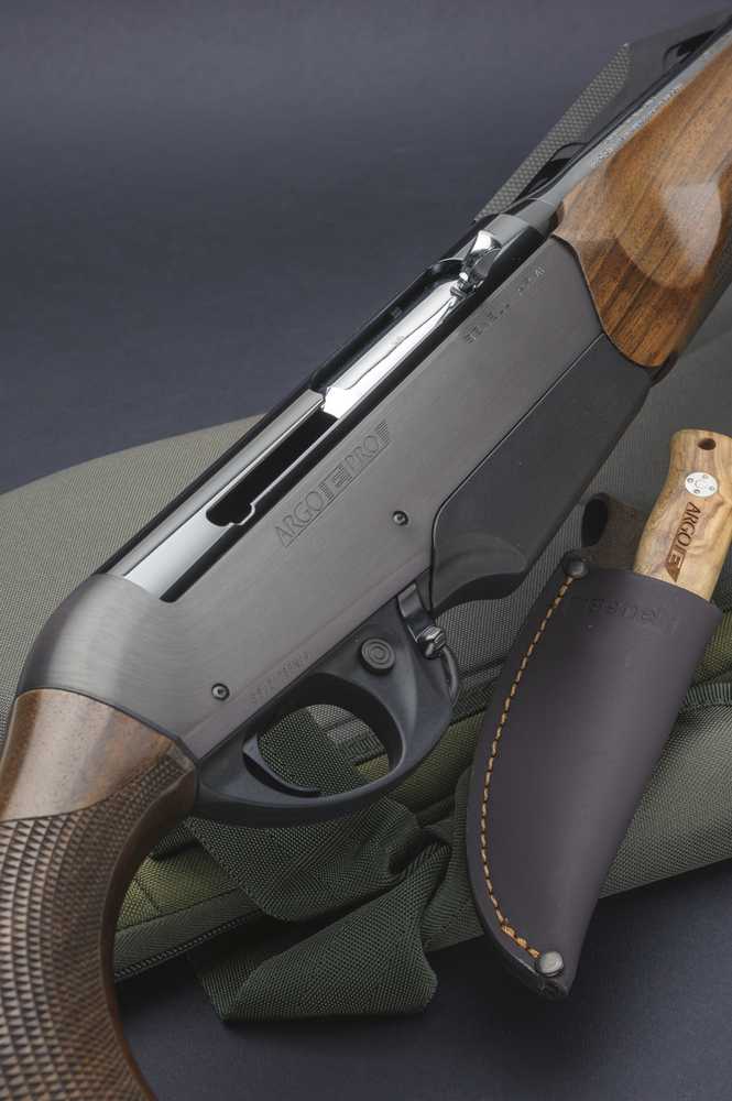Sostituendo i calcioli possiamo variare la lunghezza del calcio di un centimetro e poiché i calci sono disponibili in due differenti lunghezze avremo due gruppi di LOP (lenght of pull): 350 e 365 che, con la sostituzione dei calcioli, consentono di avere un’escursione del tiraggio tra 350 e 380 millimetri. Il calcio dell’ Argo E Pro è, per le carabine semiautomatiche, il primo calcio in noce ad assorbimento di rinculo (e quindi riduzione del rilevamento) ed è anche il primo nel quale si possano avere così ampie escursioni della lunghezza col passaggio veloce dalla lunghezza minima alla massima dello stesso calcio.