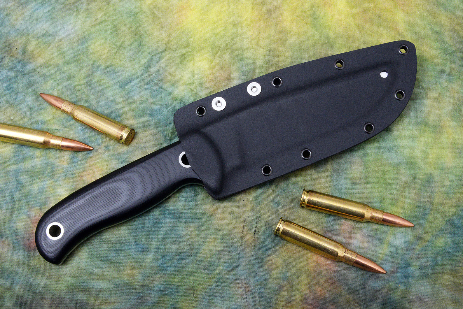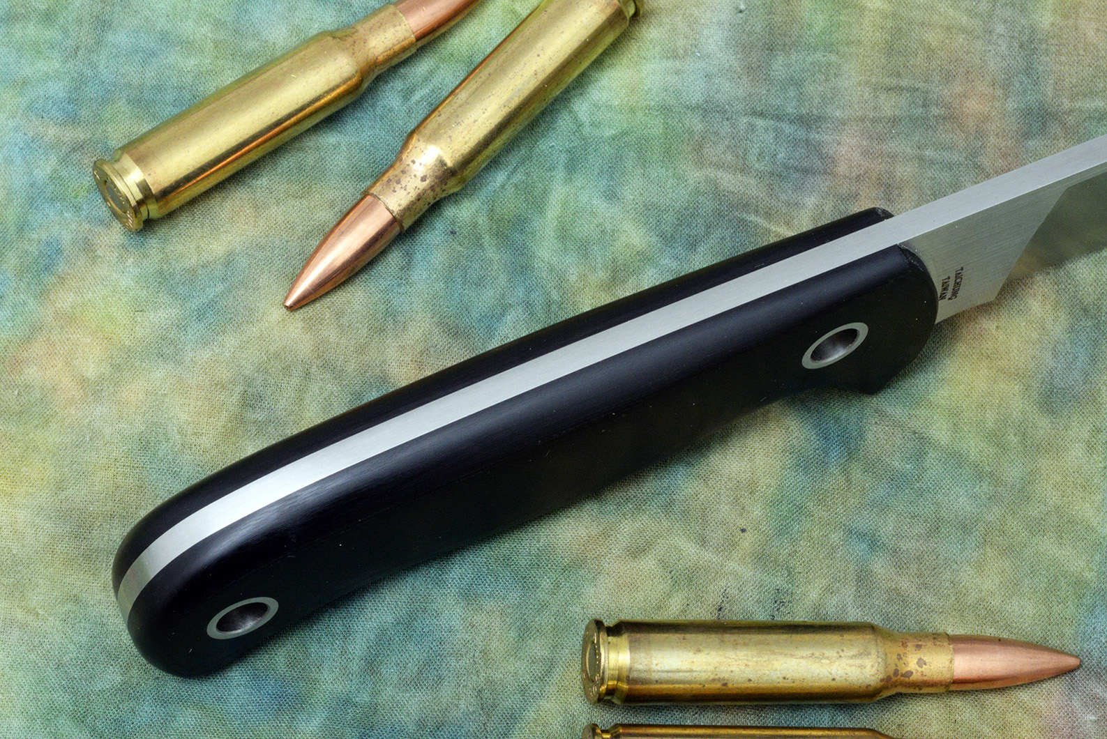 E’ un valido coltello da caccia anche ai giorni nostri? Ebbene sì, almeno nel caso di questo Bradley Bowie. Il disegno di Gayle Bradley, coltellinaio custom e vincitore di varie manifestazioni dedicate all’impiego dei ferri taglienti, riflette una profonda comprensione delle meccaniche di taglio unita alla passione per gli acciai ad alte prestazioni. In questo caso l’acciaio da lui scelto è il PSF27, paragonabile al D2 ma colato allo stato fuso in controcorrente di Argon che lo suddivide in minute goccioline. Queste si aggregano e formano un blocco che può essere laminato e lavorato. I carburi fini sono uniformemente distribuiti e il processo è