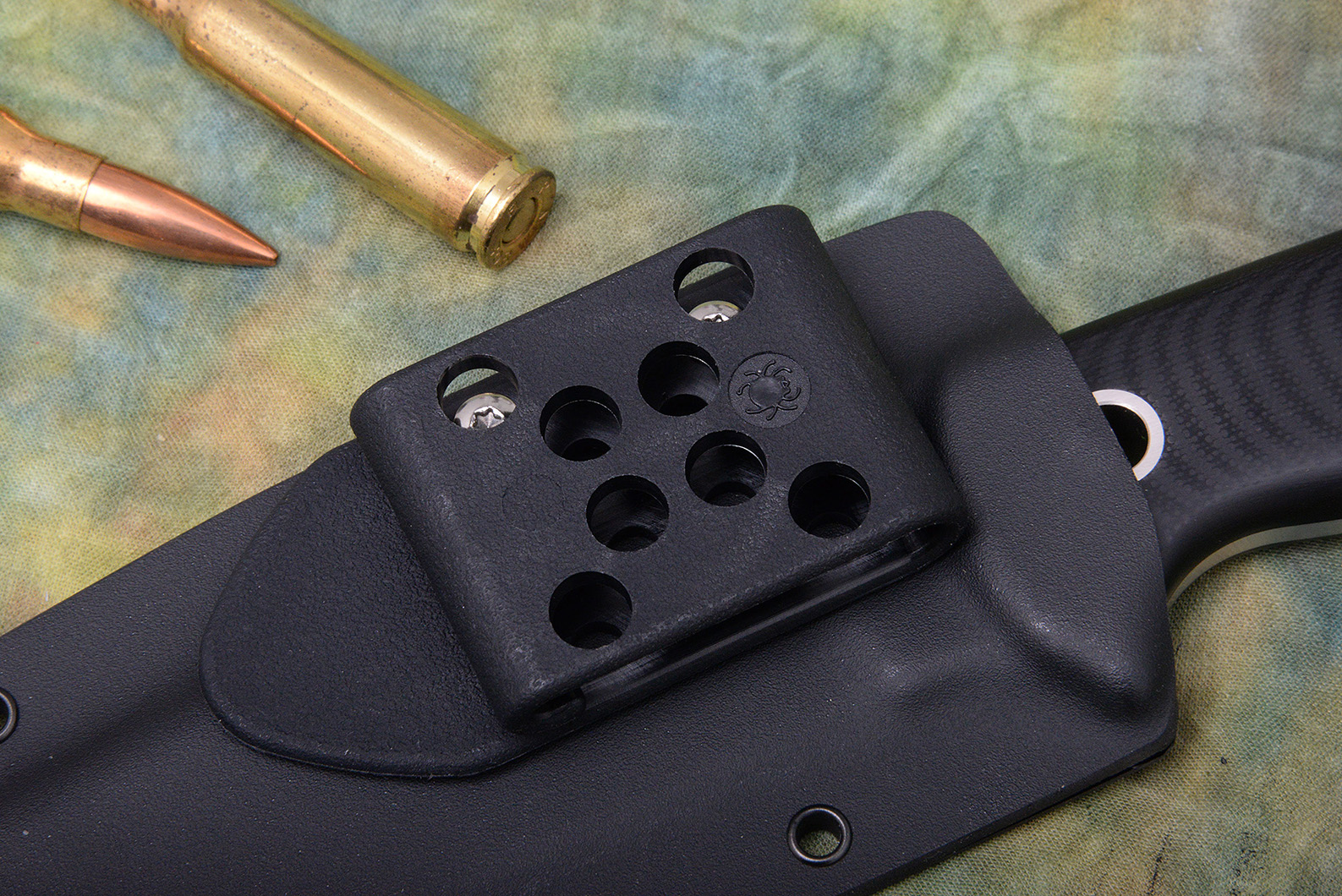 consentire vari lavori. Con la lama da 5 pollici spessa 4 millimetri, è robusto senza essere così ingombrante da renderne difficoltoso l’uso. L’arrotatura è piana, una caratteristica alla quale Spyderco fa spesso ricorso e che purtroppo non è imitata da altri costruttori. Benché l’arrotatura concava sembri, visivamente, più efficace quella piana o piano-convessa dura più a lungo ed è più robusta. Se poi l’uso non venatorio dcl coltello, al momento della colazione che non manca mai perché a caccia vien fame, è quello di affettare un salame, solo l’arrotatura piana funziona davvero bene. Il