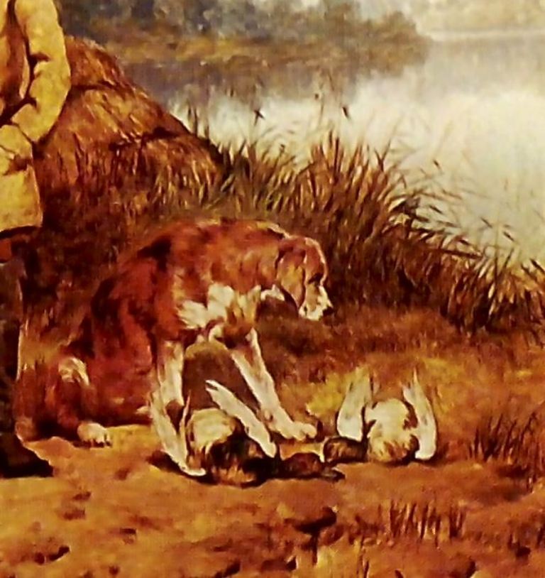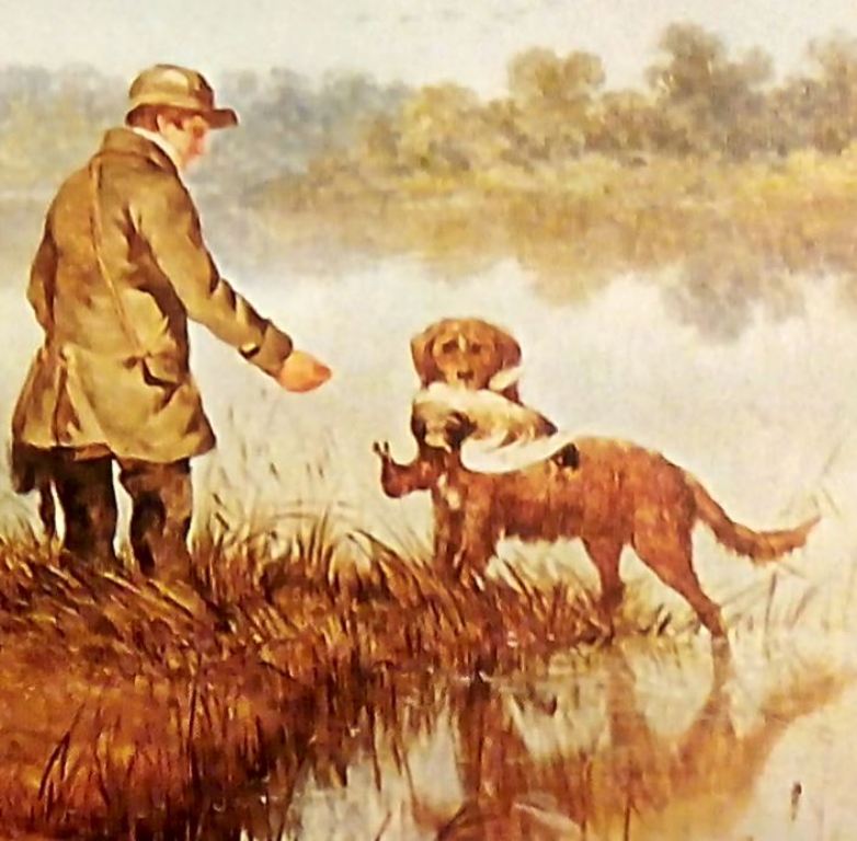 d’acqua di ogni tipo. Nel dipinto vediamo il riporto di uno dei due retriever, di