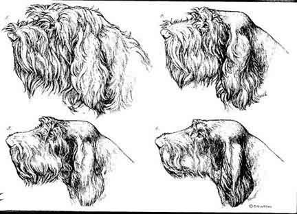 Poi ne descrive l’occhio rimarcando l’umanità e l’intelligenza che traspare da questo e che rende lo spinone un cane assolutamente unico. A questo punto, l’innamorato Faccioni approda alle caratteristiche fisiologiche. Egli lamenta, a giusta ragione, che un luogo comune che attanaglia lo spinone è la diceria che questo cane sia scarsamente dotato olfattivamente perchè lento nella cerca rispetto ai cani inglesi e perchè molti esemplari risultano inutilizzabili. Questa volta il nostro giornalista dà l’impressione di voler imbroccare subito la giusta via, quella cinologica, e ricomincia spiegando come nello spinone la percentuale di soggetti inabili alla caccia sia pari a quella di altre razze e illustrando con competenza che alla velocità di cerca non è legata la potenza d’olfatto bensì la rapidità di percezione, che è cosa diversa e che pur essendo indubbio, esclusivo patrimonio delle razze britanniche, con la finezza olfattiva in quanto tale non c’entra nulla, come stanno a dimostrare le ferme chilometriche che molti spinoni mettono in luce su beccaccini e starne. Faccioni sembra dunque esser rientrato nell’alveo dell’ortodossia tecnico-cinofila e termina elogiando il comportamento naso a terra che i cani della sua razza favorita adottano al momento di eseguire una filata. Tale attitudine, pur brutta vedersi, oltre ad essere produttiva ai fini del mantenimento del contatto, risulta vincente nel caso di recupero della selvaggina ferita. Ma un attimo dopo, ecco che Cupido scocca un’altra freccia d’amore. Faccioni infatti, per avvalorare maggiormente la sua perorazione a favore dello spinone non esita a spararla grossa: il fermatore italiano, insieme con il setter gordon, sarebbe il solo ad avere il “naso d’inverno”, che manca ad esempio al pointer. Cos’è? Secondo il nostro innamorato, è la capacità olfattiva di lavorare bene in condizioni di freddo ed umidità.