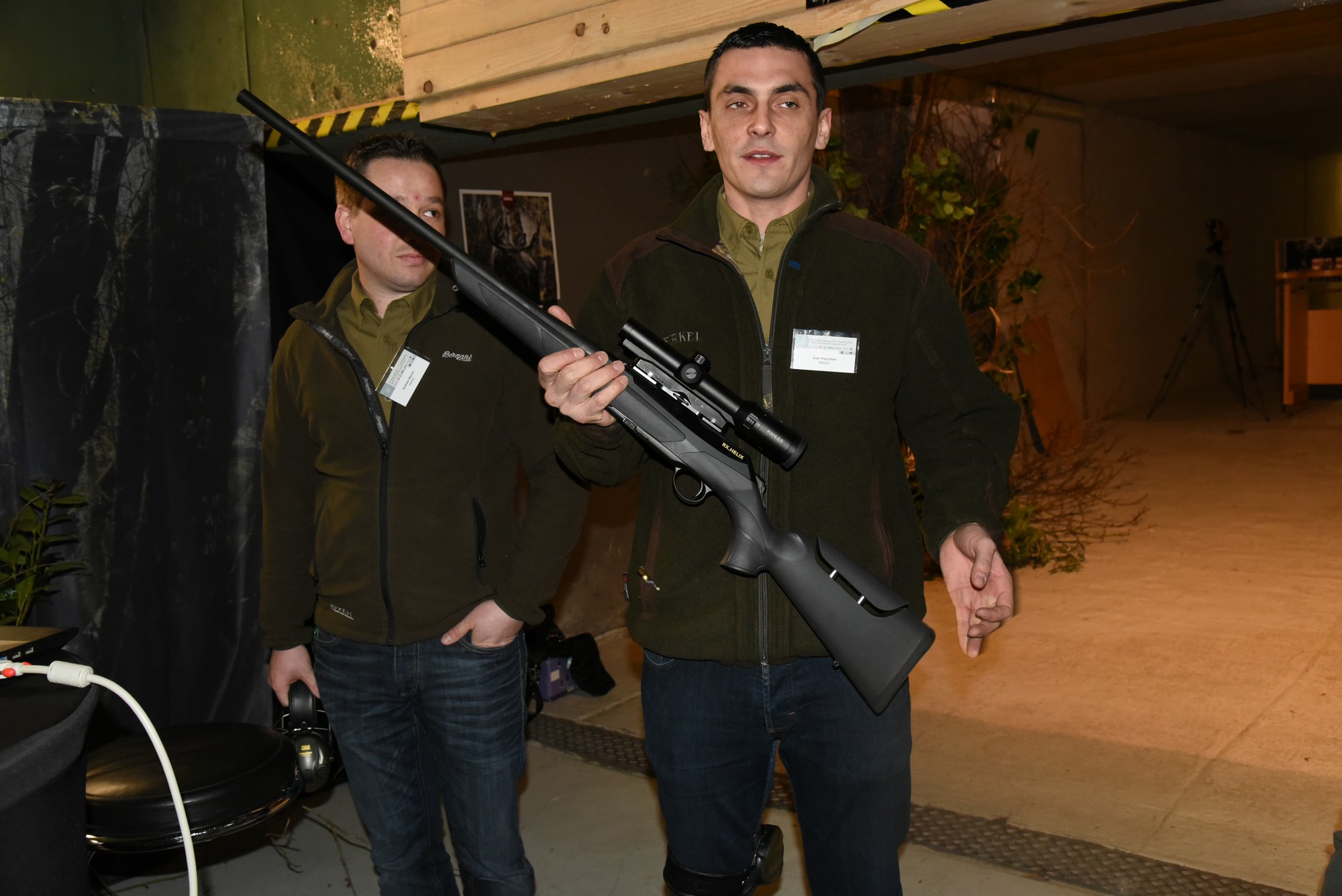 Merkel aveva la già conosciuta carabina Helix ad azionamento straight pull dell’otturatore, progettata per i Paesi che non consentono l’impiego delle carabine semiautomatiche per la caccia. L’arma era proposta sia nella versione Noblesse con calcio in noce sia nella versione con calcio sintetico Explorer; naturalmente il tiro veniva eseguito con la versione Explorer. L’esercizio proposto, al poligono a 70 metri, era teso a valorizzare la velocità di ripetizione: si dovevano colpire, d’imbracciata, quattro bersagli per poi tirare ad una sagoma di bufalo in avvicinamento. Un range officer prendeva i tempi per una sorta di gara interna tra giornalisti. Curiosità: ha vinto un tiratore mancino, che in teoria sarebbe dovuto essere il più svantaggiato…