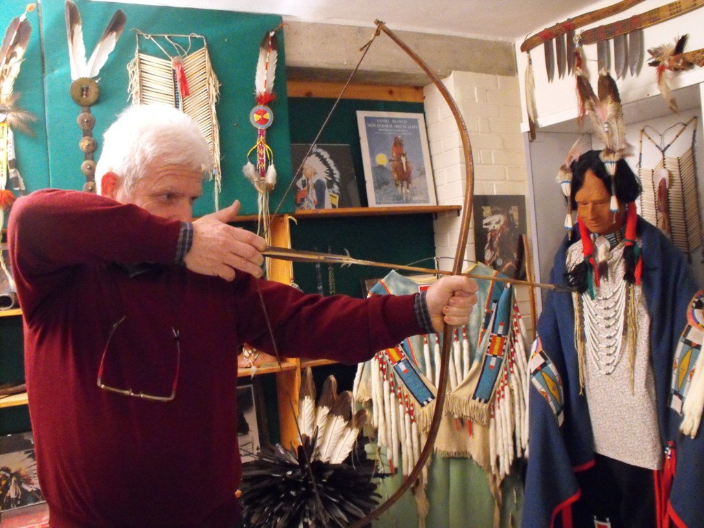Sono introdotto ed accompagnato da due amici fra i più cari, Roberto Catani, esploratore del globo terracqueo dall’Alaska all’Australia, passando per l’Africa nera, e Giancarlo Vinci, accurato cultore di storia e di popoli antichi e moderni. Ci troviamo a Foiano, un borgo incastonato nella parte più verde della Valdichiana aretina, in casa di Sergio Susani, uno dei massimi esperti europei di storia e costumi pellerossa. E’ quella che generalmente si potrebbe indicare come una casa-museo data la mole sterminata di reperti, ben raggruppati in alcune sale sottostanti al piano abitativo, ma ciò non renderebbe giustizia allo spirito indefinibile che vi aleggia, richiamato e trattenuto dal cuore e dalla