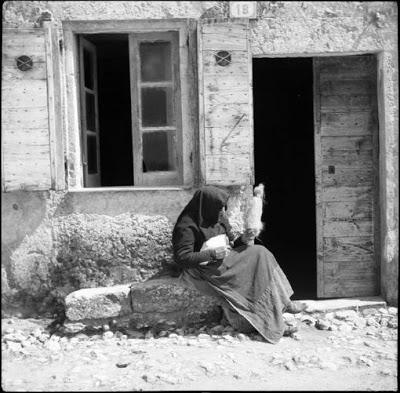 borraccia d’acqua che aveva riempito alla fonte e verso il tramonto venne assalito da una sete incontenibile. I suoi compagni anche se a vista, erano troppo lontani per essere raggiunti, soprattutto in condizioni di fatica ed arsura come quelle in cui lui versava. La caccia all’acqua, drammaticamente, si sostituì a quella alle starne. Dopo un’altra ora di inutili, quasi disperate ricerche di un fontanile o anche una pozzanghera, lo scrittore avvistò un casolare che sorgeva in podere poco lontano. Pieno di speranza, vi si diresse accelerando il passo quando le prime luci del tramonto già doravano i contorni degli alberi. Giunto nell’aia, la prima cosa che lo colpì fu la generale impressione di povertà che sembrava aleggiare su quella casupola. Vide una donna ed un ragazzo che battevano dei fagioli bianchi con ritmo di stanca rassegnazione, mentre tre bambini giocavano con un cagnolino rotolandosi nella polvere. Vedendolo arrivare, una ragazzina, fra i bimbi che giocavano, sgattaiolò in casa furtivamente chiudendosi dietro l’uscio scrostato. La donna portava una bandana nera calata quasi sugli occhi e sulla sua pelle, segnata da rughe precoci e profonde, potevano leggersi a chiare lettere storie di privazioni e di sofferenza.