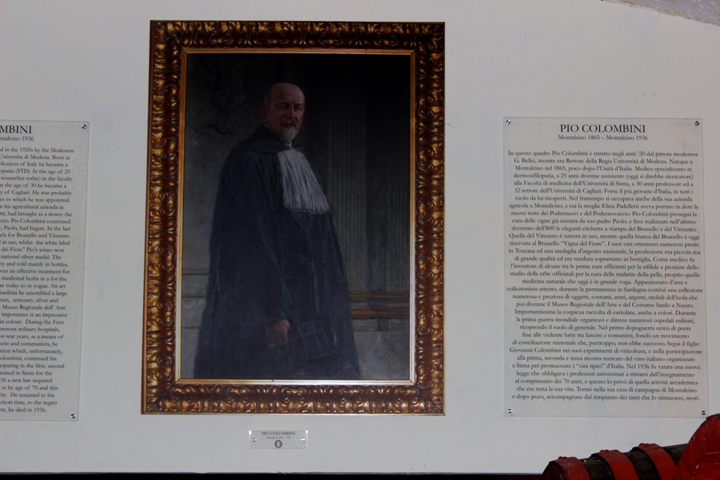 bottiglie pregiate riposano al buio, con la benefica compagnia del fresco e del silenzio e con la guardiania discreta di una luce ad infrarossi. Il dottor Cinelli Colombini illustra le fasi salienti della saga familiare, dall’ingresso nella nobiltà senese nel tredicesimo secolo fino ai giorno nostri, e sorprende la capacità di rammentare aneddoti remoti, legati a questo o quell’altro degli antenati componenti la numerosa ed illustre galleria.