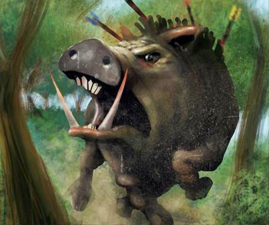 “Ma tu guarda in che pasticcio mi son cacciato! Da solo nel bosco ad affrontare un cinghiale assassino e grosso come un asino! Ma poi, che codesto somarino abbia aspettato che venissi io per ritornare da queste parti, è veramente il colmo della sfortuna. Accidenti a lui, al marchese e alla bucaiola della sù mamma!”