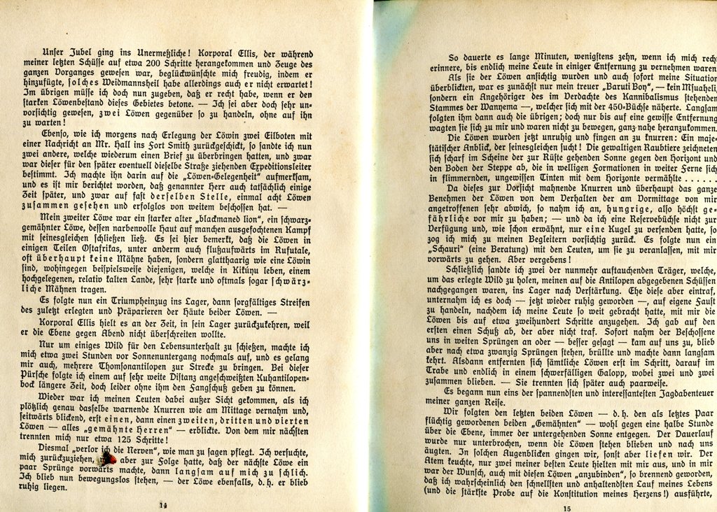 “Mit Blitzlicht und Buechse, im Zauber des Eleléscho”: Eine Loewenjagd..