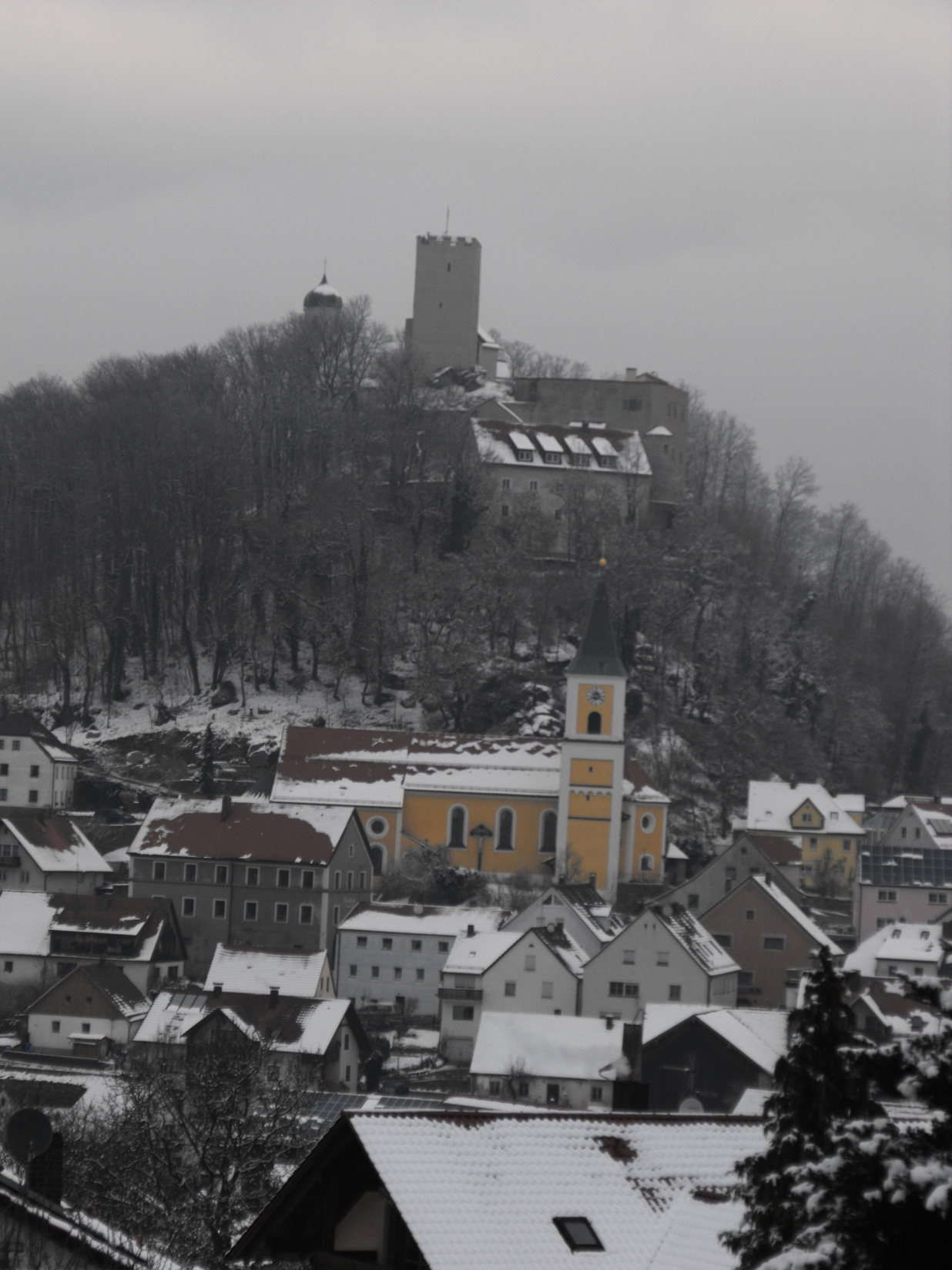 Quando usciamo, la torre del castello è ormai una stele illuminata nel buio della sera. Fa freddo, e la neve caduta rende ancora più invernale il profumo dell’aria. Il sindaco Dengler spegne le luci e chiude dietro di sé il pesante cancello che protegge il portone. Ci chiede dove alloggiamo e ci invita a bere una birra insieme per proseguire la chiacchierata. “Una bavarese!”, ci tiene a sottolineare con la sua disarmante cordialità.