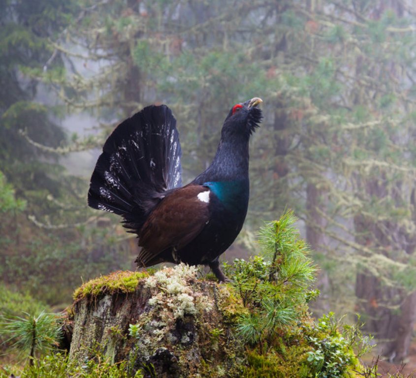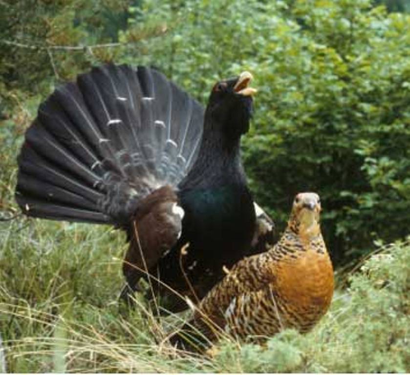 Très commun autrefois en France, dans toutes les régions montagneuses, le grand coq de bruyère ne se rencontre plus que très ‘rarement et pour ainsi dire à l’état de familles isolées dans les Vosges, le Jura et les Pyrénées. Encore peut-on prévoir sa disparition à brève échéance, en raison de la chasse inintelligente qu’on lui fait et de l’abandon dans lequel on le laisse relativement au braconnage alors qu’il mériterait tant d’être protégé. Le grand tétras habite les parties intermédiaires des versants des monta-gnes où il se cantonne sur un espace relativement peu étendu, ne descendant jamais dans la plaine et vivant exclusivement des fruits et mets sauvages que lui procure la végétation des pâtures élevées et des bois. Il y trouve, en effet, en abondance les aiguilles, les bourgeons et les graines des pins et des sapins, les faînes dans les forêts de hêtres, les fruits du genévrier, les pousses tendres et les chatons des peupliers, des coudriers, des bouleaux et des saules, les baies des airelles myrtilles et des framboisiers sauvages, sans omettre les fourmilières dont les larves sont la première et la plus précieuse nourriture pour ses petits. C’est un oiseau dont les habitudes sont plutôt casanières et peu bruyantes, au moins ru dehors de lit