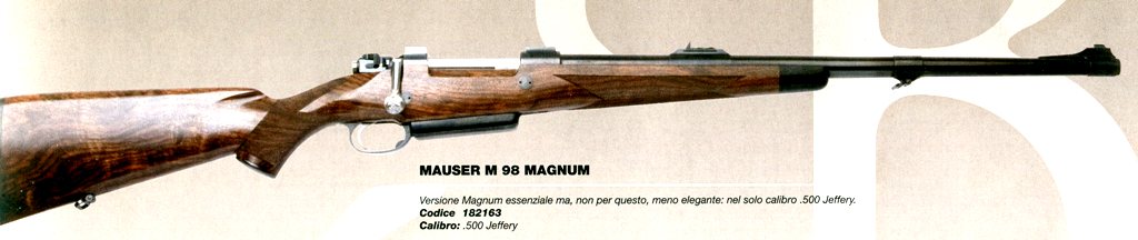Con lo sviluppo della carabina 98, verso la fine dell’Ottocento, i fratelli Mauser segnarono una svolta nella produzione armiera. Ancora oggi, l’immortale Mauser M98 è sviluppato, come si diceva,  da disegni originali ma è concepito e prodotto attraverso le tecnologie più avanzate. Rimane una delle più popolari carabine di sempre, soprattutto per la caccia grossa. La serie 98 è immutata e immutabile: classico otturatore a due ramponi su ponte anteriore, estrattore lungo, classica sicura a farfalla a tre posizioni sul codolo, serbatoio fisso con apertura inferiore definiscono, ad esempio, l’ultima versione di questa intramontabile opera d’arte.