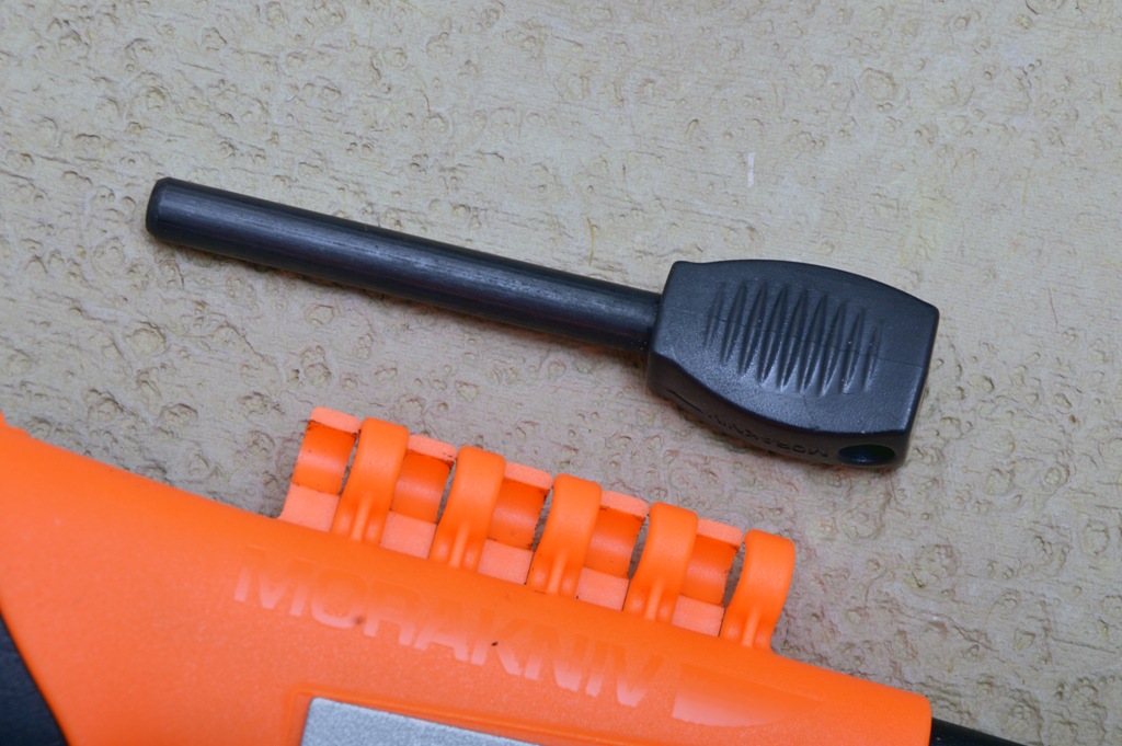 secca o esca. E’ sufficiente grattare l’interno di una corteccia, meglio se di betulla, per ottenere una buona esca. Per agire sull’accendifuoco occorre prima raschiarlo leggermente in modo da togliere lo strato protettivo iniziale o il leggero strato di ossido che su può formare col tempo; a questo scopo il dorso della lama è piatto e forma due spigoli vivi. Le scintille emesse hanno una temperatura di 3000 gradi e possono accendere quasi ogni cosa ridotta in piccolissimi pezzi. Un coltello di qualità e accessoriato che permette di trarsi d’impaccio in ogni situazione, venduto ad un prezzo davvero basso.