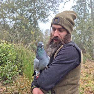 Prendiamo posto nella parata. L’umidità da fermi punge ancora di più. Pippo il “rosato” e Apache il “ternano”, il piccione di Daniele, sono compunti e compresi nel loro cardinale ruolo di “richiamatori”. Scrutano fra la nebbia sempre tesa e montante, allungano il collo, distendono le ali, a volte compiono uno svolazzìo incitati dal lieve movimento del rullo, azionato da un telecomando, affiancati da due zimbelli impagliati e ben piazzati su quelle branche della pianta che guardano a mezzogiorno. La giornata però non è delle più adatte. La coltre di