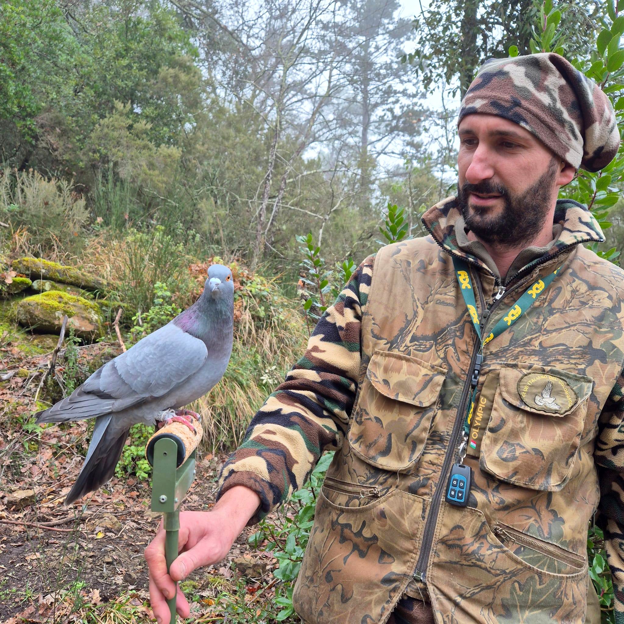 Prendiamo posto nella parata. L’umidità da fermi punge ancora di più. Pippo il “rosato” e Apache il “ternano”, il piccione di Daniele, sono compunti e compresi nel loro cardinale ruolo di “richiamatori”. Scrutano fra la nebbia sempre tesa e montante, allungano il collo, distendono le ali, a volte compiono uno svolazzìo incitati dal lieve movimento del rullo, azionato da un telecomando, affiancati da due zimbelli impagliati e ben piazzati su quelle branche della pianta che guardano a mezzogiorno. La giornata però non è delle più adatte. La coltre di