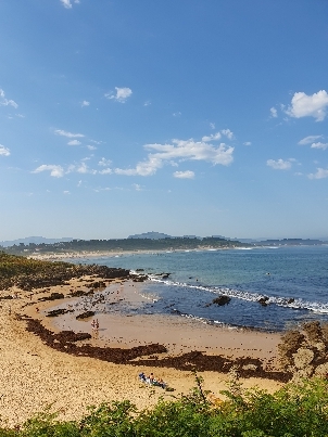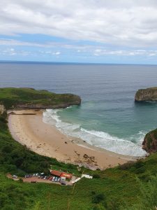 autonoma della Cantabria, e si tratta di una città di 350 mila abitanti assolutamente da visitare, posta lungo il rìo Nervion, un fiume navigabile sino al mare. Portugalete, cittadina sul mare subito dopo Bilbao, famosa per avere il ponte trasportatore più antico del mondo e ancora funzionante. La Cantabria mi ha affascinato molto, perché oltre ad essere ricca di paesaggi davvero unici, verde infinito e natura incontaminata, è terra di un susseguirsi di spiagge bellissime, a volte lunghissime, che arricchiscono ancora di più questo cammino straordinario. Non potrò mai dimenticare il contatto diretto con l’oceano, la sua sabbia, il susseguirsi di tappe che mi hanno visto camminare per lunghissimi tratti sulla spiaggia, in mezzo ai tantissimi turisti, ai bambini che giocavano spensierati in acqua e alle tante persone che mi spronavano a non mollare, incoraggiandomi e offrendomi delle bevande fresche. Come non citare Islares,