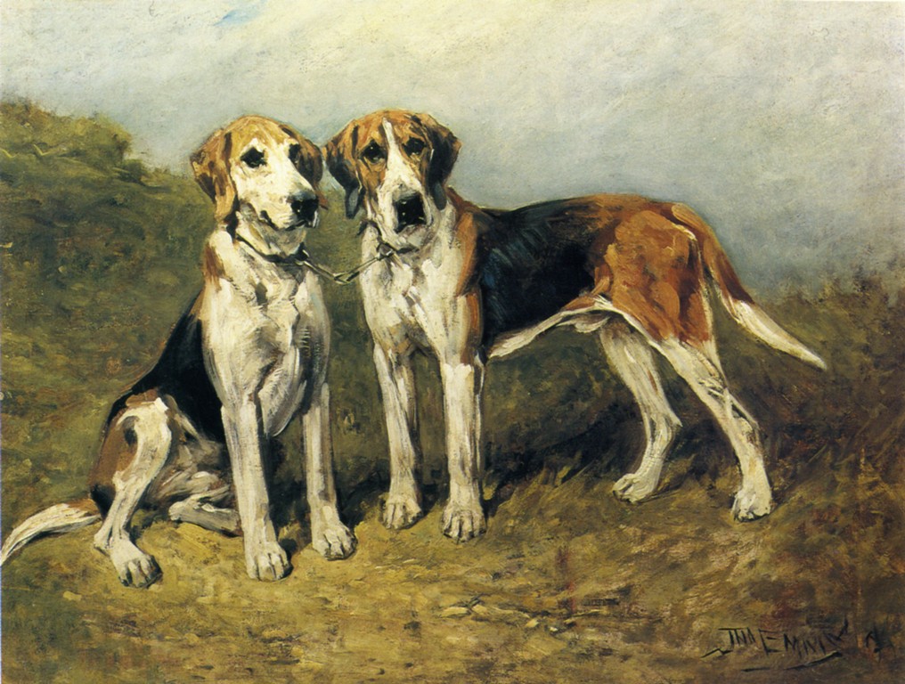 (immagini: sopra a sinistra greyhounds e in basso a destra foxhounds, entrambi progenitori del pointer)